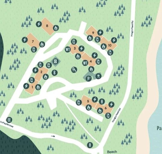 Hungar Head is a quiet bushside retreat, with a central BBQ and gazebo space surrounded by rustic cabins, sleeping up to 6 guests. Hungary Head beach is a short walk away, its also the ultimate quiet, private space to host groups of all types.